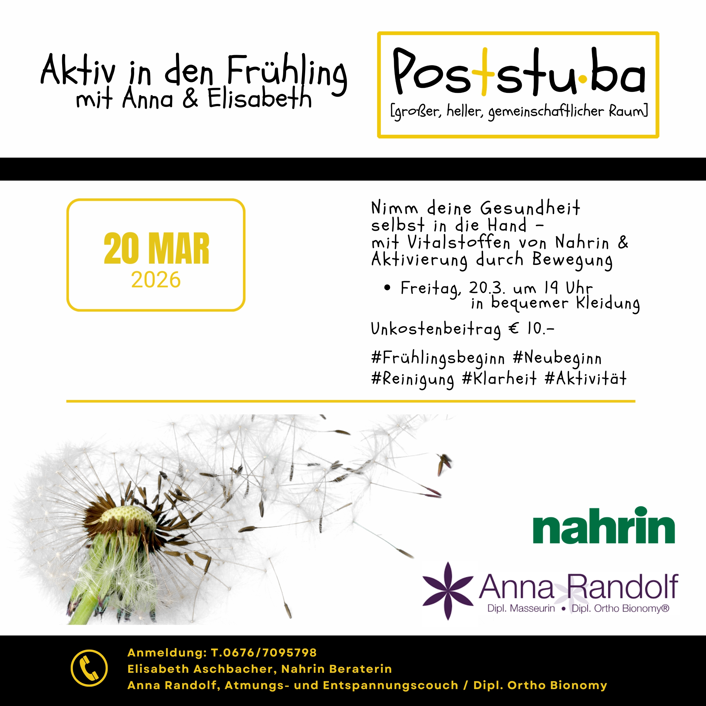 Unkostenbeitrag: € 10,--. Frühlingsbeginn, Neubeginn, Reinigung, Klarheit, Aktivität.