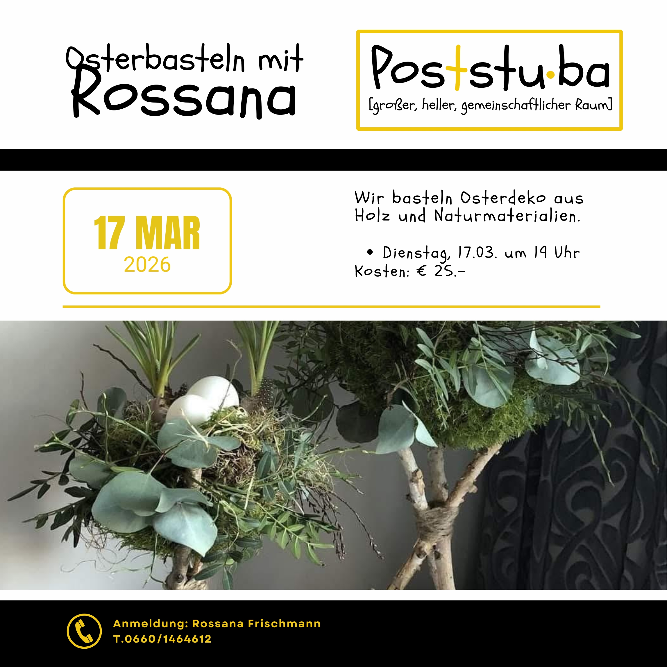 Wir basteln Osterdeko aus Holz und Naturmaterialien. Kosten: € 25,--.