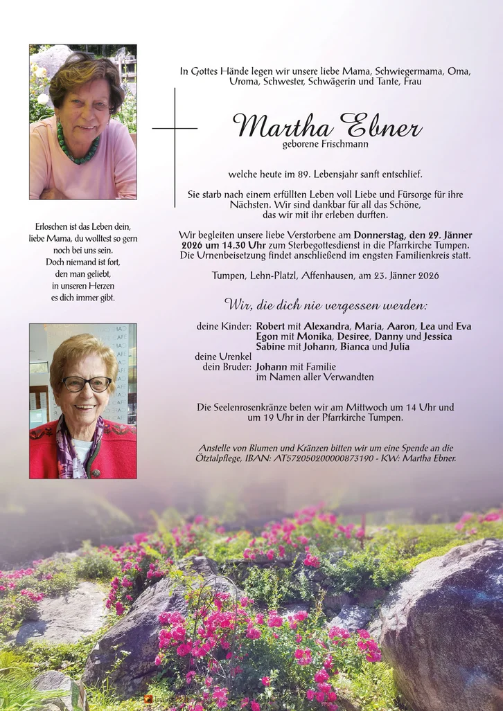 Todesfälle in Umhausen 2026